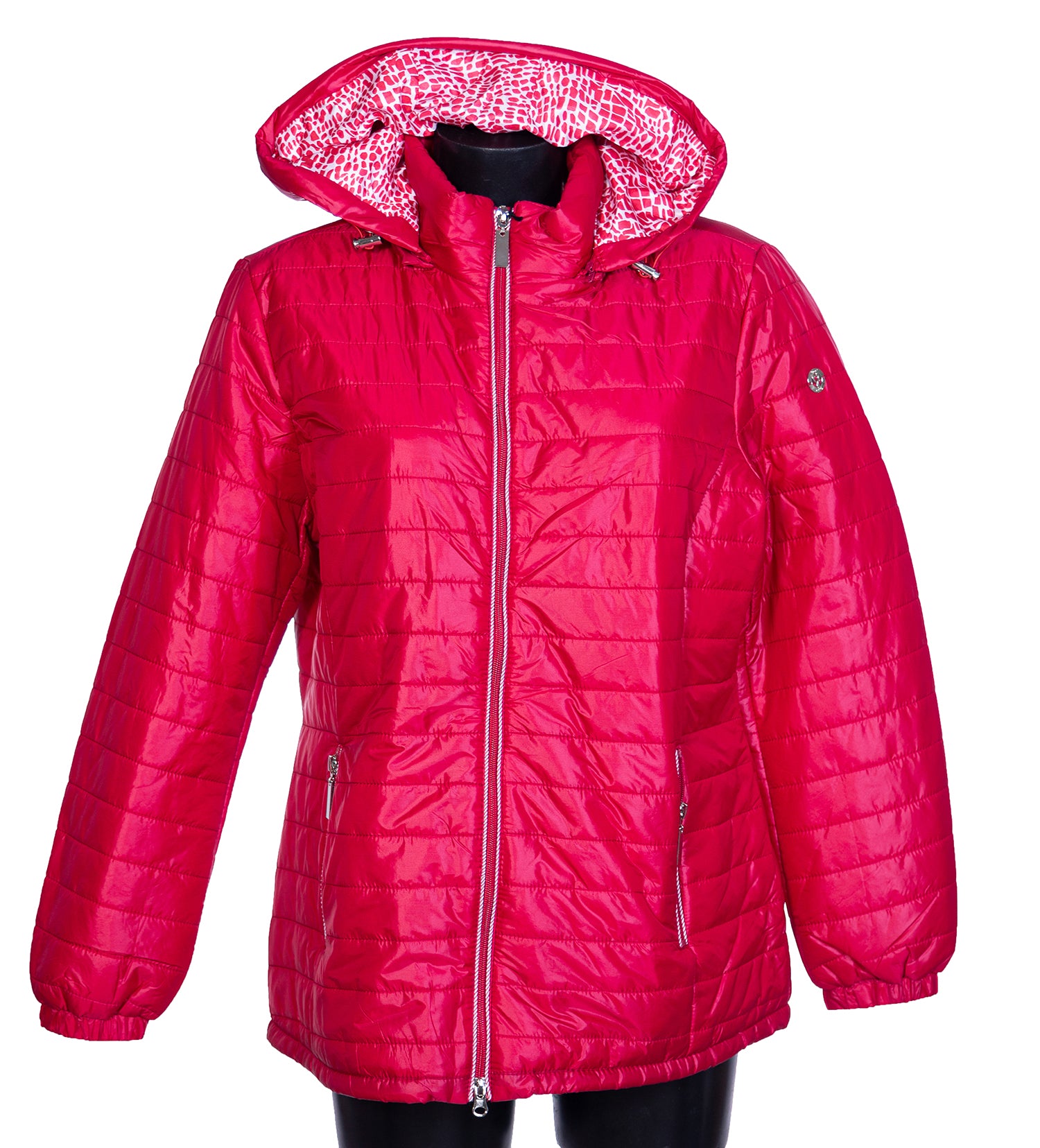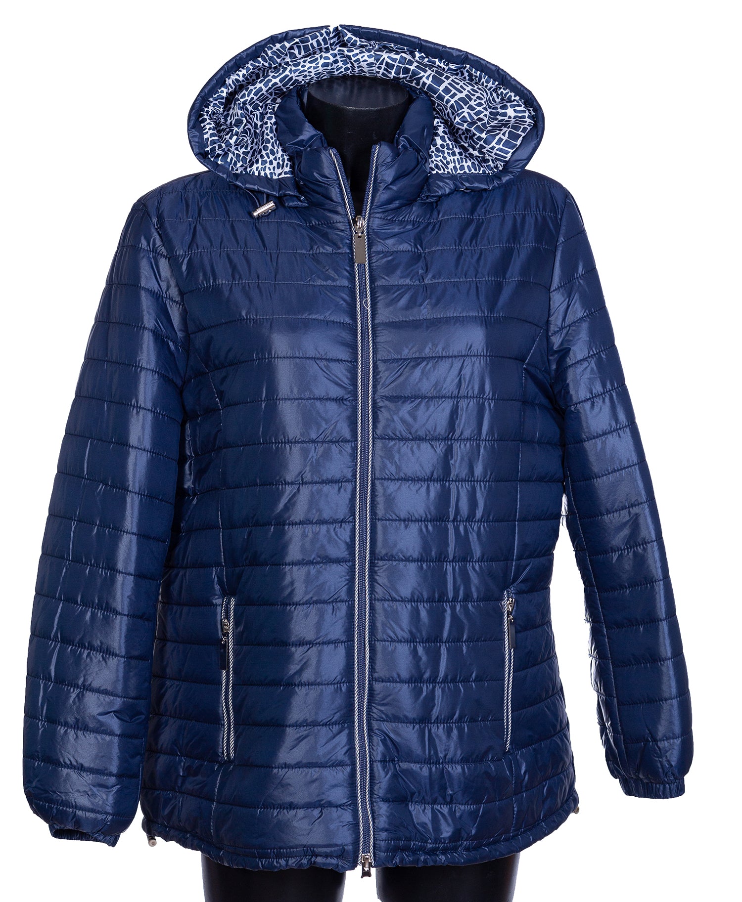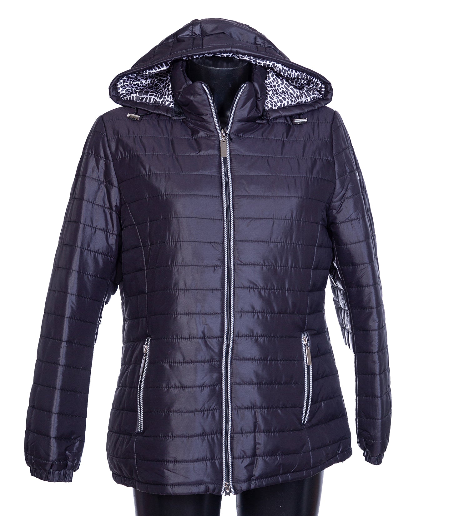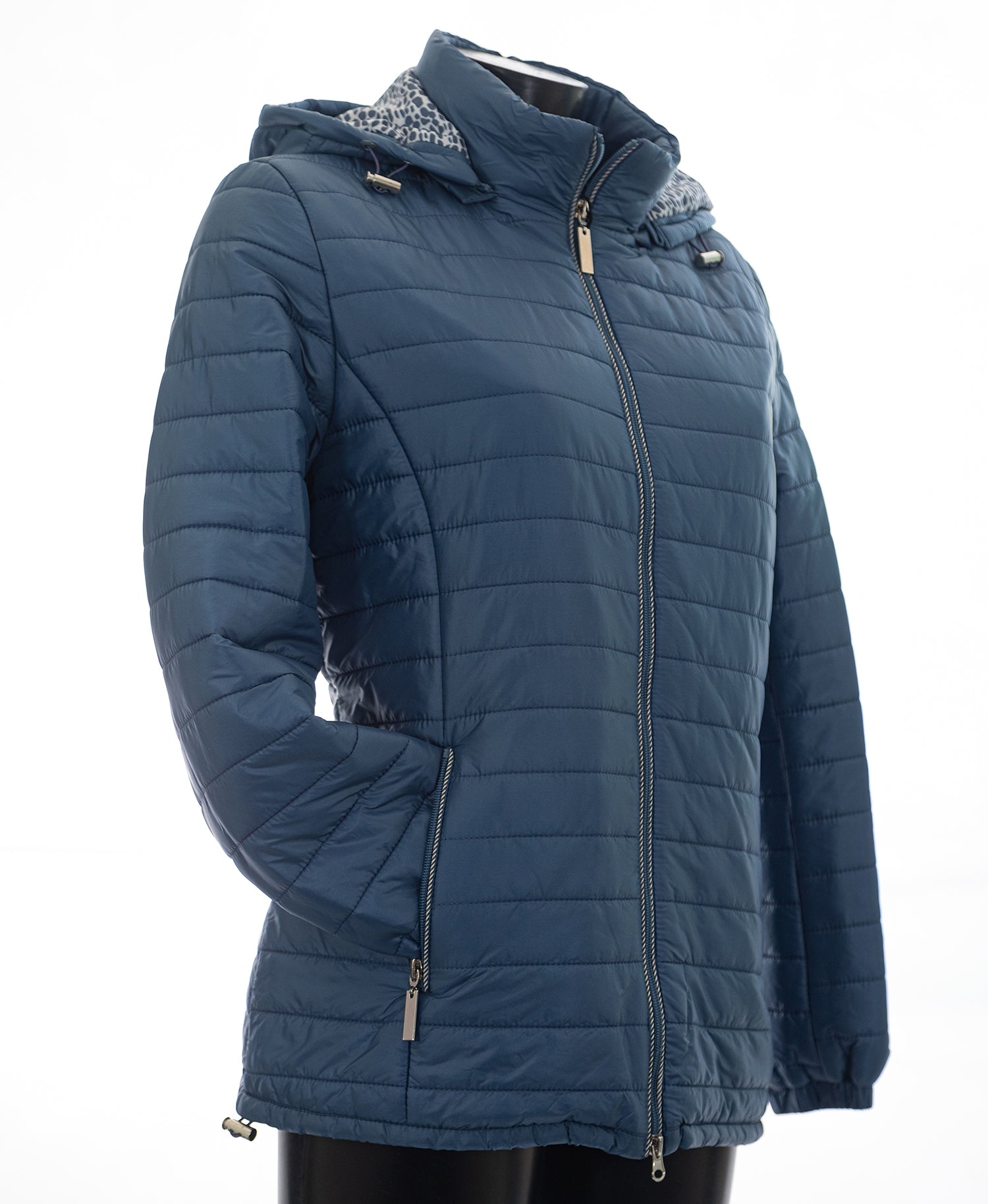 Giacca trapuntata da donna taglie forti conformate, cappuccio staccabile , chiusura a zip, interno fantasia
