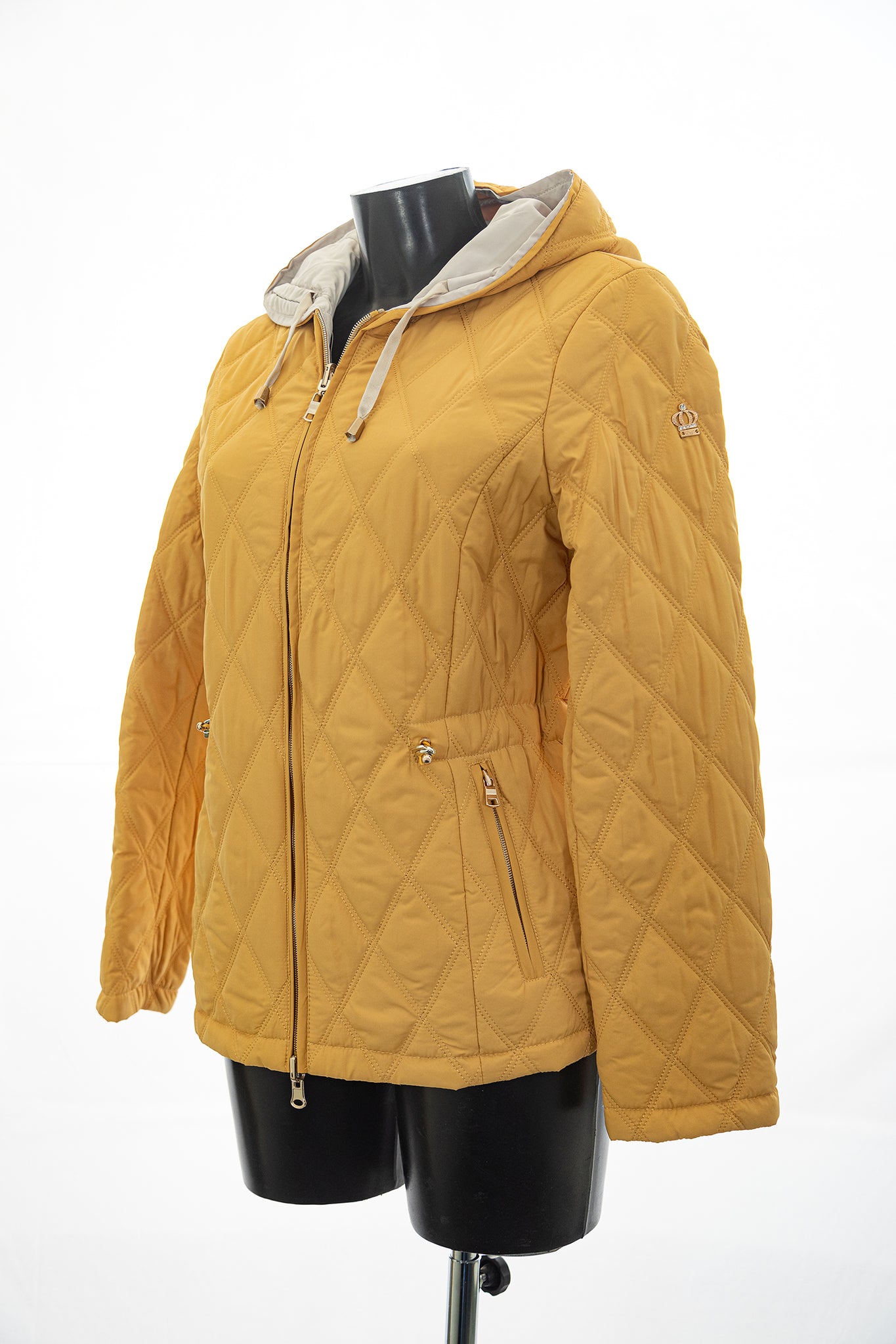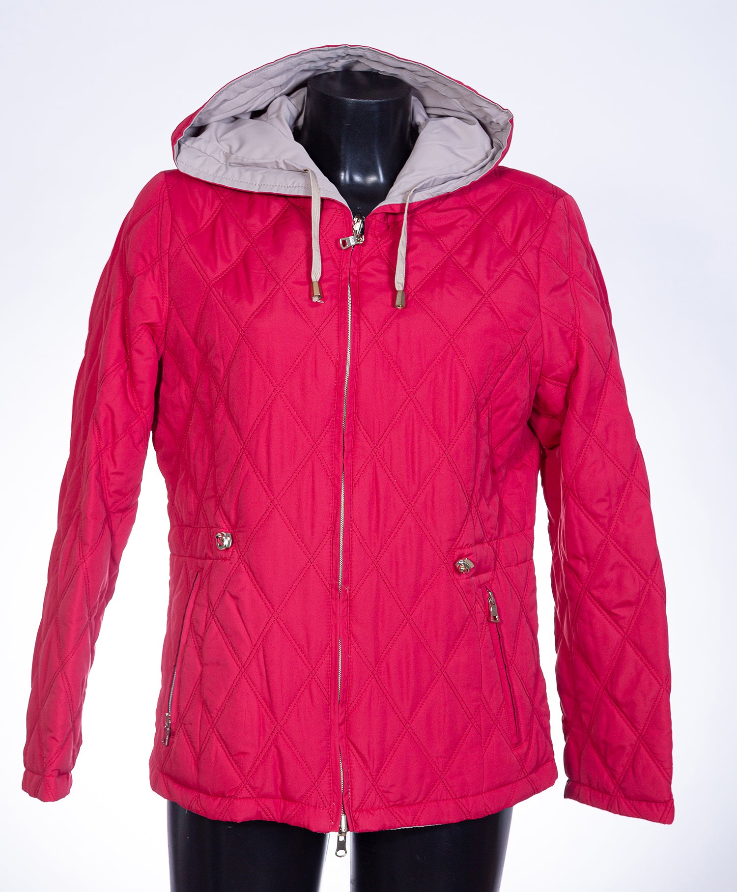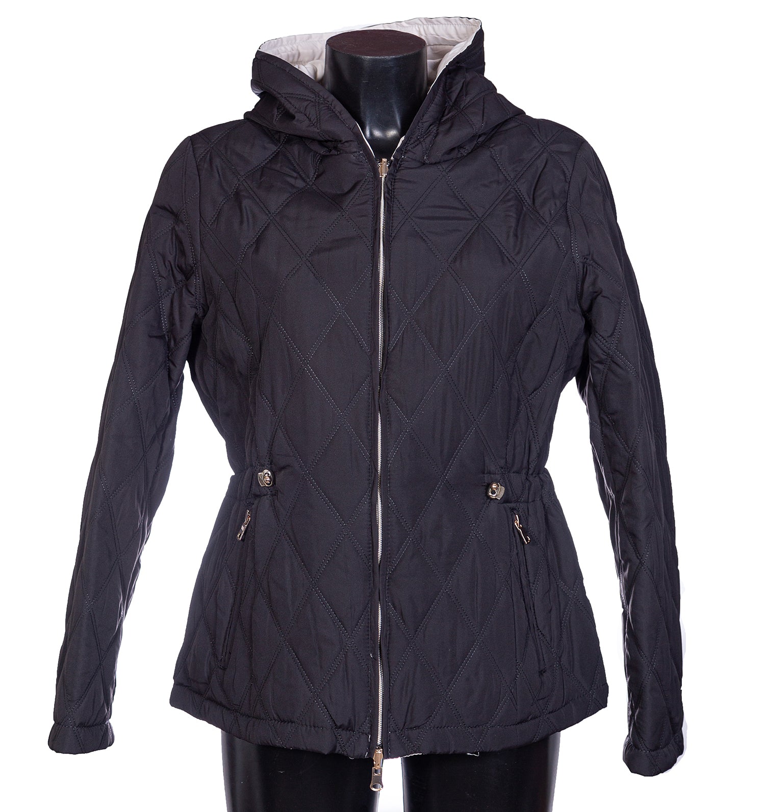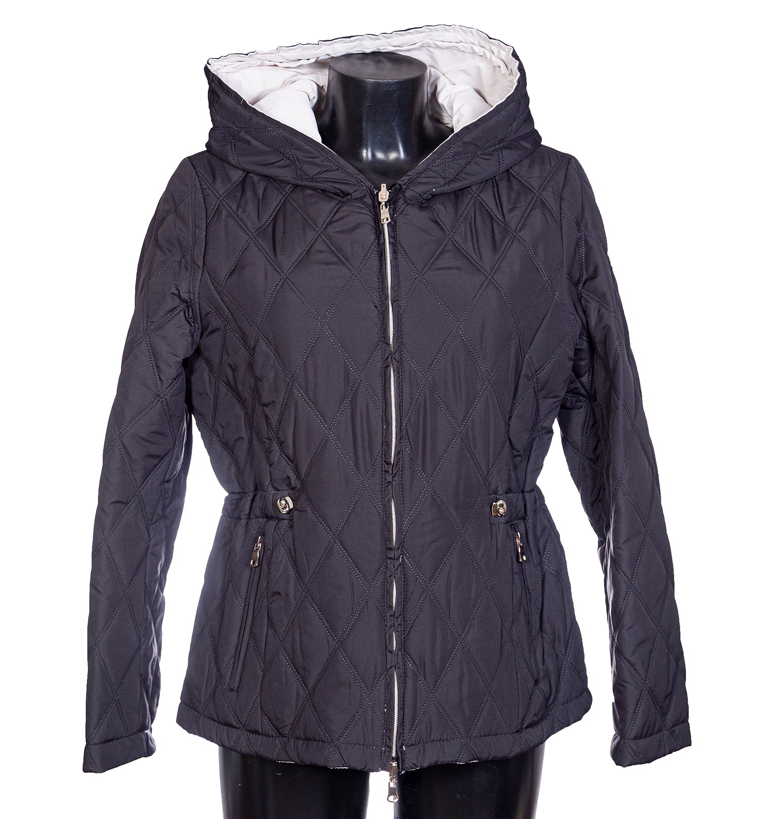 Giacca trapuntata da donna  con coulisse in vita, cappuccio in tinta, chiusura a zip con doppio cursore , doubleface, taglie forti, reversibile