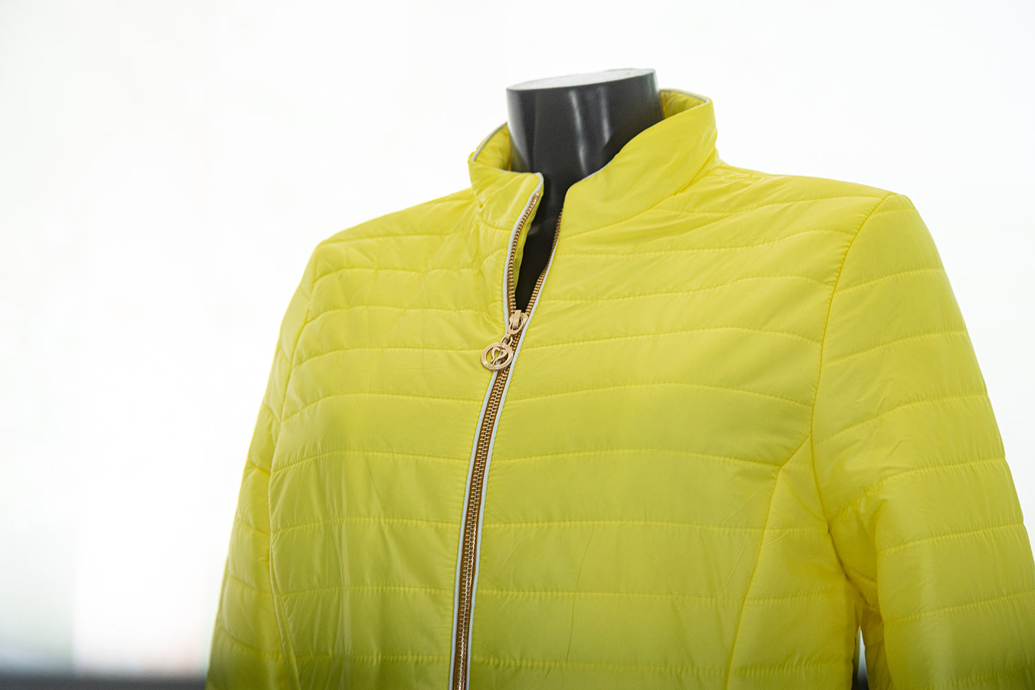 Giacca trapuntata da donna ,interno a con interno a contrasto,chiusura trapunta zip color oro, chiusura tasche con bottone, taglie forti