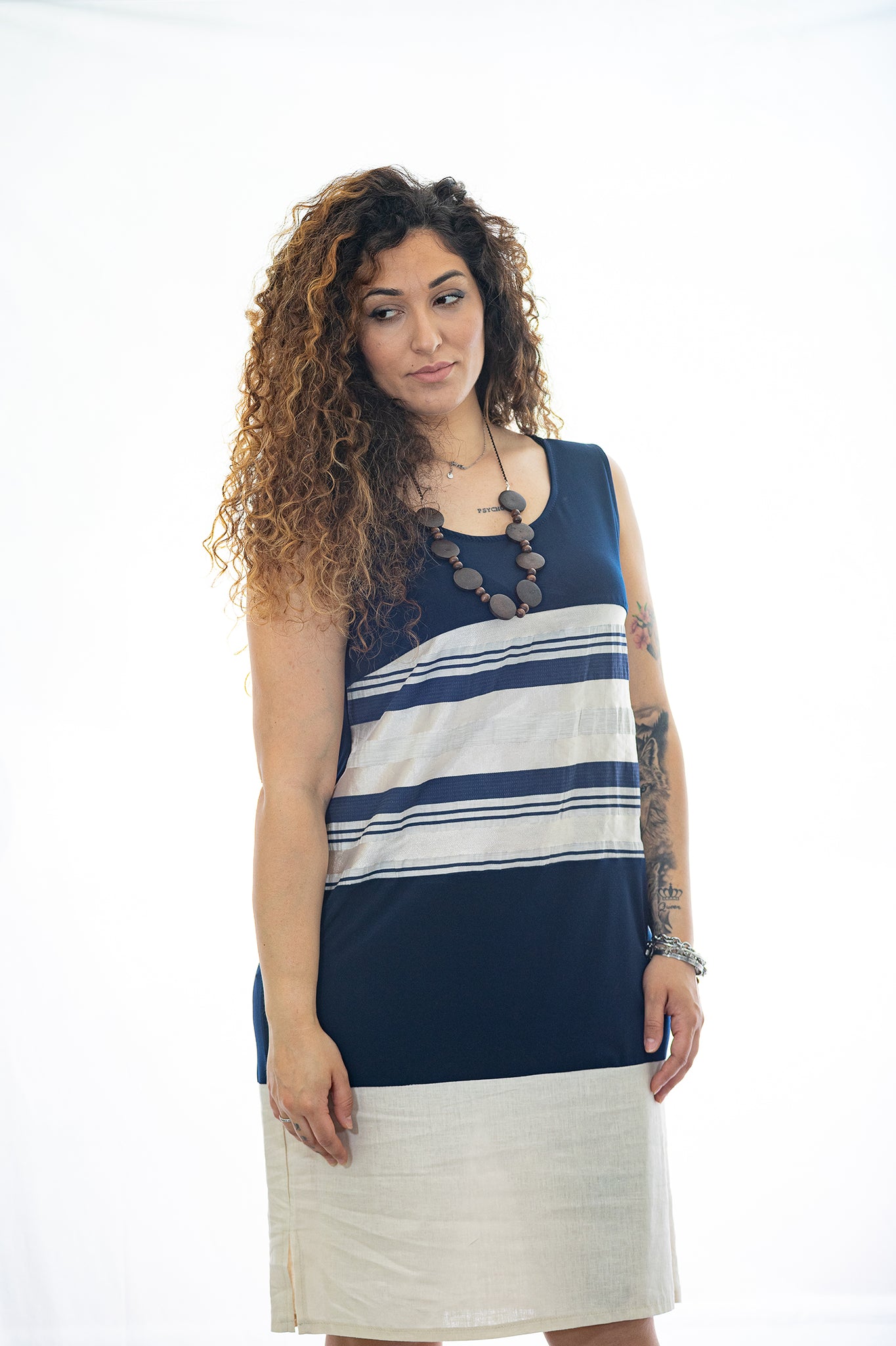 Vestito da donna con collana in abbinato, taglie forti, vestibilità comoda